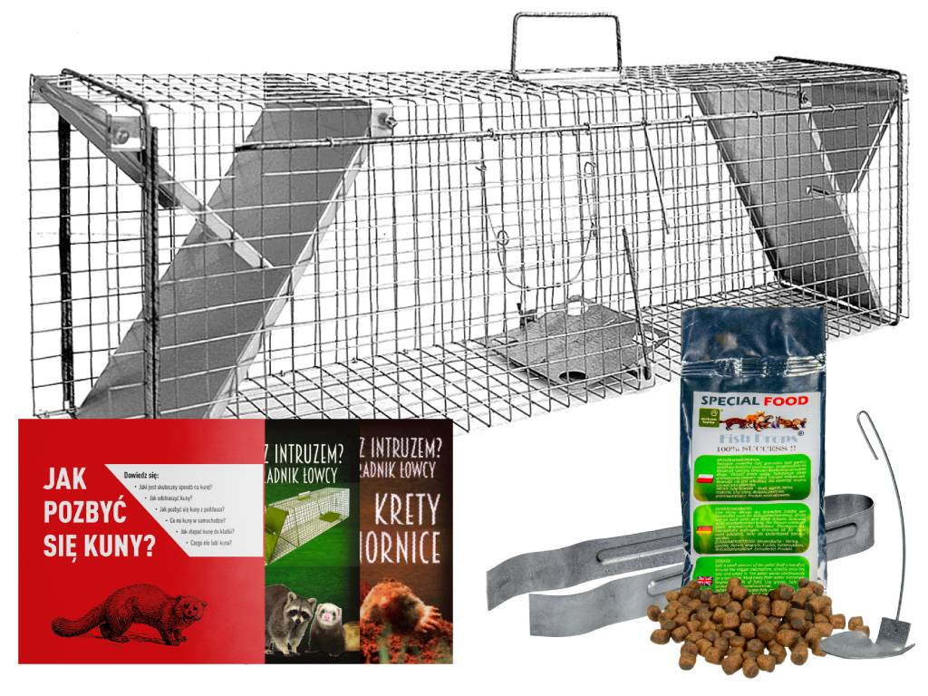 Pułapka na kuny pozwoli na pozbycie się natrętnego zwierzęcia z naszej okolicy. Żywołapka wykonana z wysokiej jakości ocynkowanej stali, o zwiększonej odporności na korozję. Zaopatrzona w mechanizm zapadkowy, który zamyka się po zwolnieniu go przez zwierzę, które wejdzie do wnętrza klatki. Zamontowana do żywołapki rączka pozwala na łatwe przenoszenie i przewożenie kuny w inne docelowe miejsce wypuszczenia. Pułapka nie jest malowana, nie posiada więc obcych zapachów, które mogłyby wzbudzić podejrzliwość zwierząt. Taca zanętowa zwalniająca mechanizm zapadniowy posiada specjalne otwory na pozostawienie kurzych jaj, oraz haczyki na np.: mięso, ser jako wabika. Pułapka o budowie dwustronnej - nie ma znaczenia od której strony wchodzi zwierzę. Pułapka zamyka się jednocześnie z obu stron.